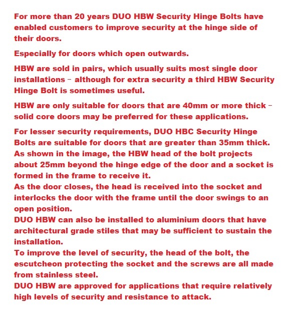 Duo HBW High Security Hinge Bolts